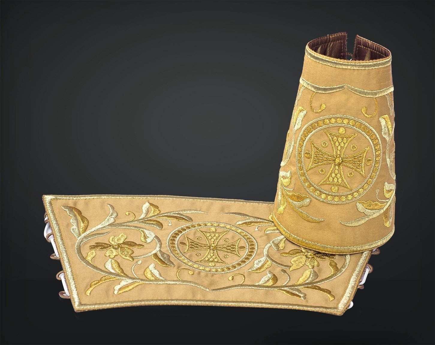 The treasury of the mediaeval monastery of DECHANI in the Serbian province of Kosovo and Metohija contains a unique pair of liturgical cuffs which served as the inspiration for this set of vestments.